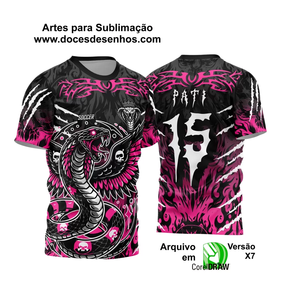 A Arte Vetor - Camisa de Interclasse Preta e Rosa - Jogos Internos - Serpente Caveiras - 2024 - 2025 é ideal para quem busca criar camisas e produtos personalizados com um design ousado e moderno. Desenvolvida por Doces Desenhos, essa arte oferece flexibilidade e qualidade, garantindo personalizações que se destacam em qualquer competição. Adquira agora e receba o arquivo digital diretamente no seu e-mail, pronto para download após a confirmação do pagamento!