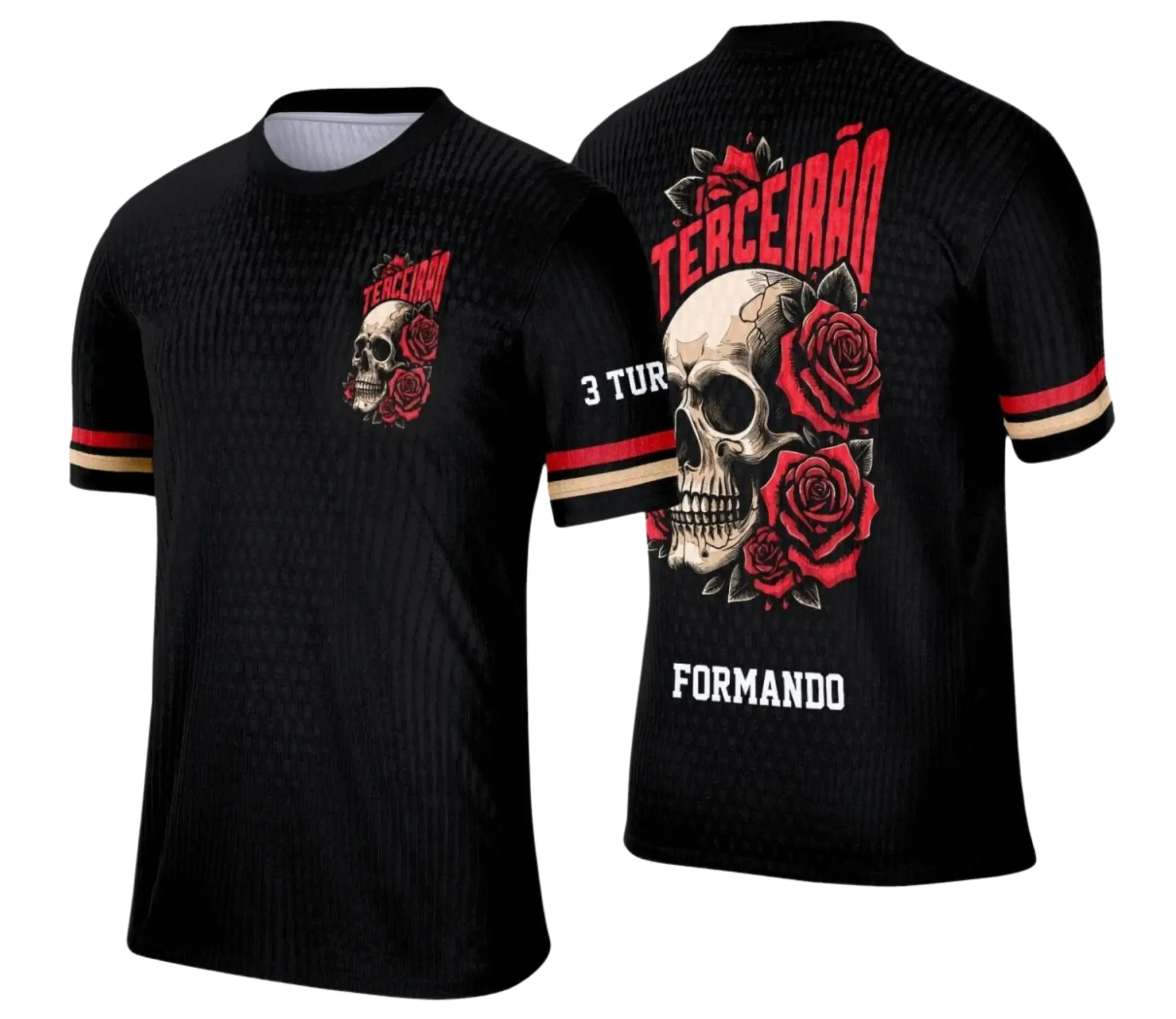 Arte Camiseta Terceirão Caveira com Rosas – Estampa Uniforme