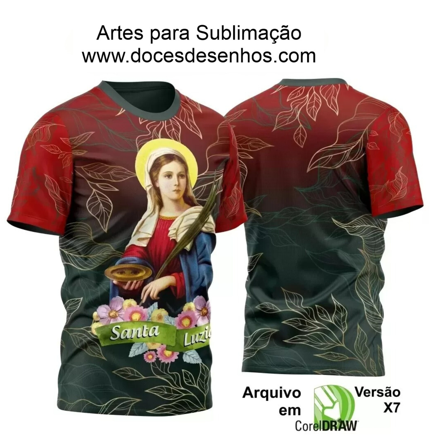 A Arte Vetor Camisa Santa Luzia 2024 - Religião - Festejo - Santa Luzia 2024 - 2025 pode ser utilizada em diversos produtos personalizados além de camisas, como bonés, jaquetas e bandeiras, todos com a mesma qualidade e impacto visual. Este arquivo digital em formato CDR (.cdr x7) é compatível com as principais ferramentas de design, facilitando a edição e adaptação conforme suas necessidades.