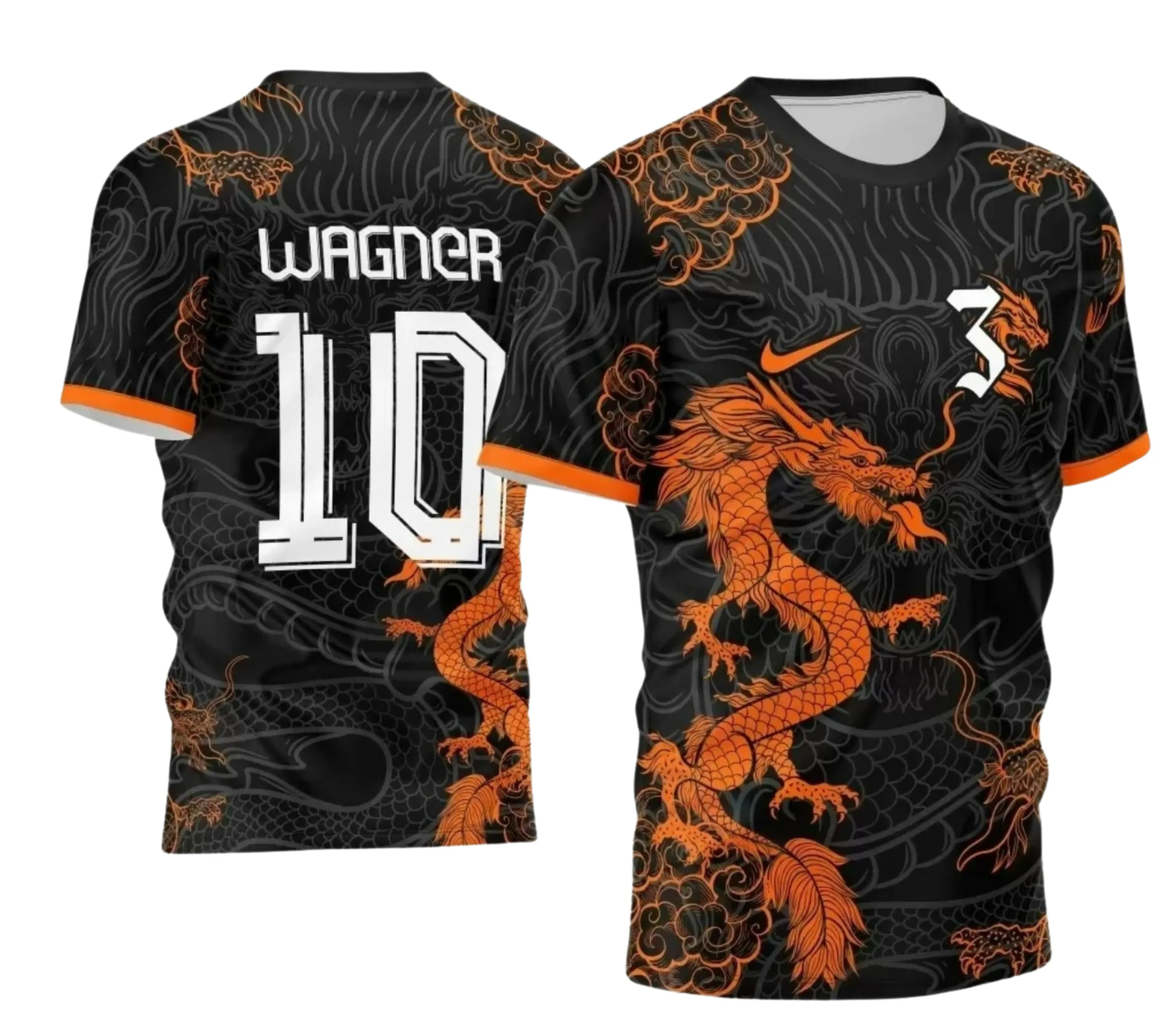 Camisa InterClasse 2024: Dragão Laranja - Eleve o ânimo e a energia da sua equipe com um uniforme que é uma verdadeira explosão de vitalidade e paixão. O design, inspirado no magnífico dragão laranja, simboliza a força, a agilidade e a chama inextinguível de competir e triunfar. Esta camisa é uma representação perfeita da determinação e do espírito vibrante que anima cada jogador.