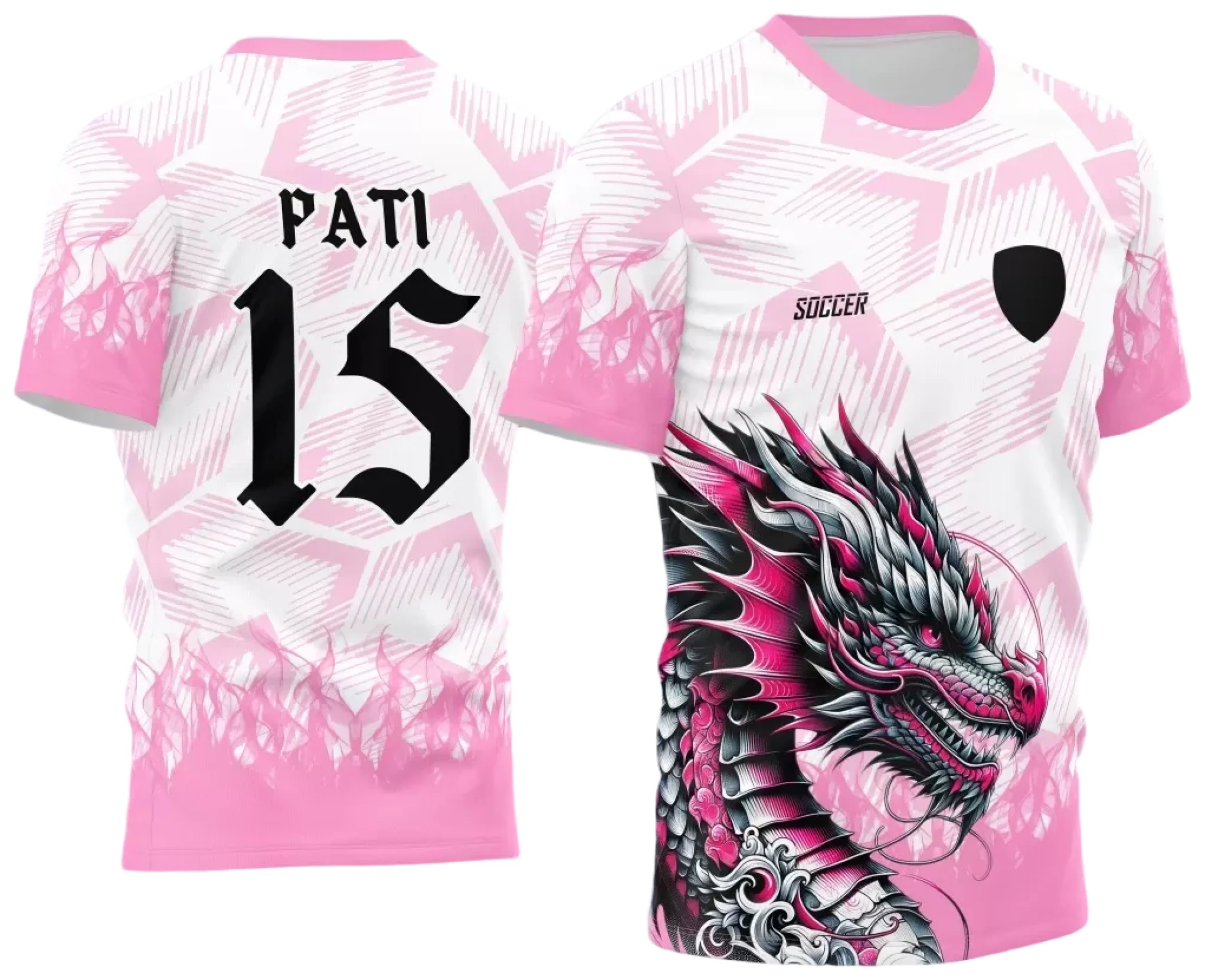 Com a Arte Estampa Camisa Rosa e Branca Interclasse - Jogos Internos 2024 - Dragão Chamas Rosas, você pode explorar uma ampla gama de aplicações, desde a confecção de uniformes esportivos e camisetas promocionais até acessórios personalizados. Este design exclusivo proporciona uma identidade visual forte e marcante, aumentando o valor percebido dos seus produtos e destacando sua marca no mercado.