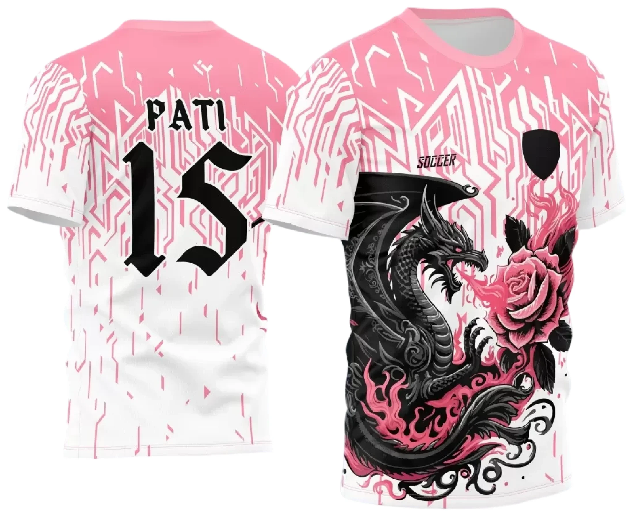 A Arte Vetor Camisa Interclasse - Jogos Internos 2024 - Dragão Flor Rosa é a escolha perfeita para equipes que buscam um design impactante e delicado para os Jogos Internos de 2024. Este arquivo digital apresenta um dragão estilizado com elementos florais em rosa, criando uma combinação única de força e beleza. O design do dragão com flores rosa destaca-se em qualquer fundo, proporcionando um visual sofisticado e atraente, ideal para representar a elegância e a determinação de sua equipe.