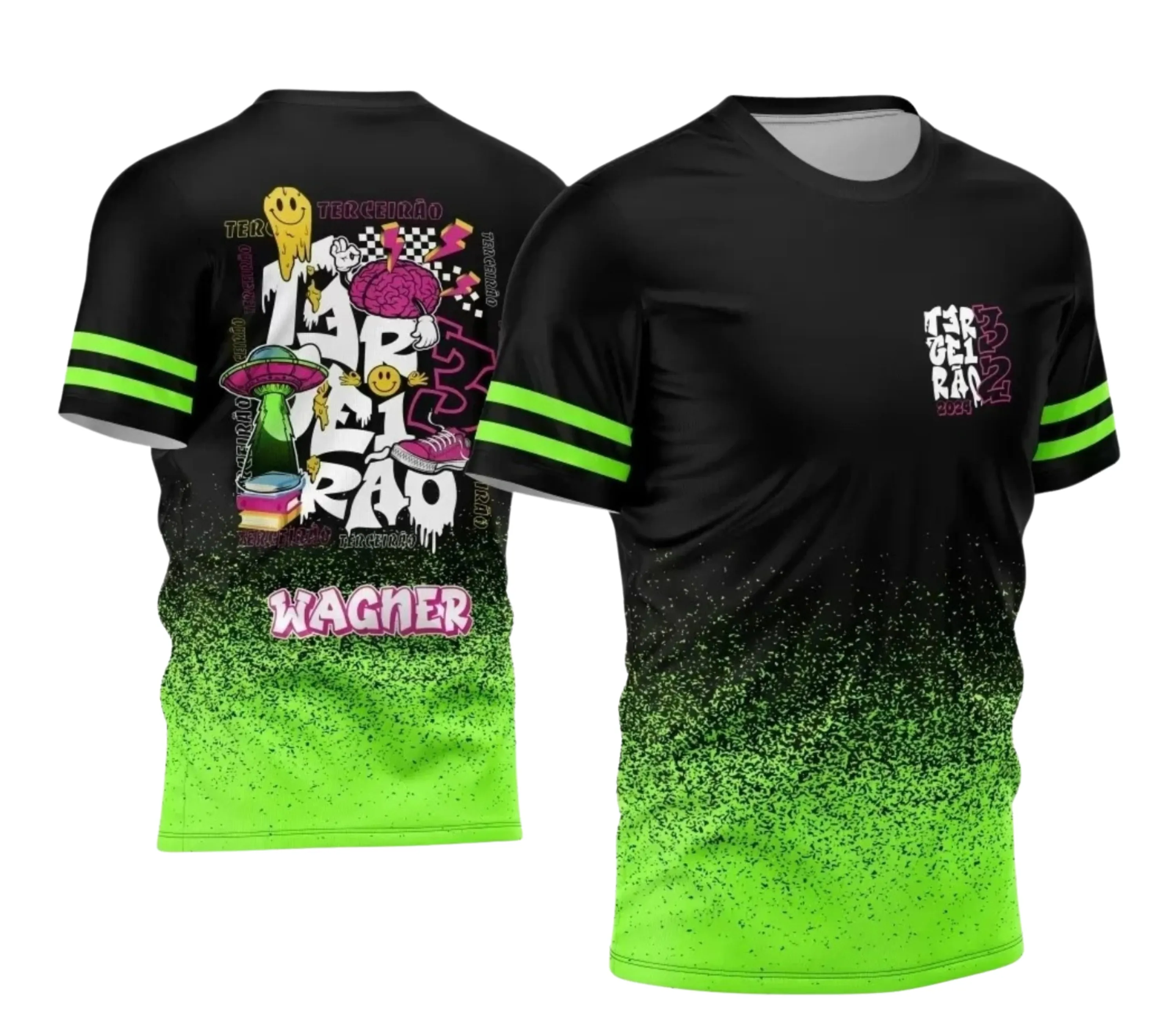 O Template Camisa Preta e Verde Terceirão 2024 Alien é mais que um simples design; é uma expressão de identidade. Ele foi criado para marcar este momento tão especial de forma única, garantindo que a sua turma seja lembrada por sua criatividade e união. Utilize este template para celebrar o encerramento de um ciclo importante com estilo, personalidade e uma pitada de aventura intergaláctica.
