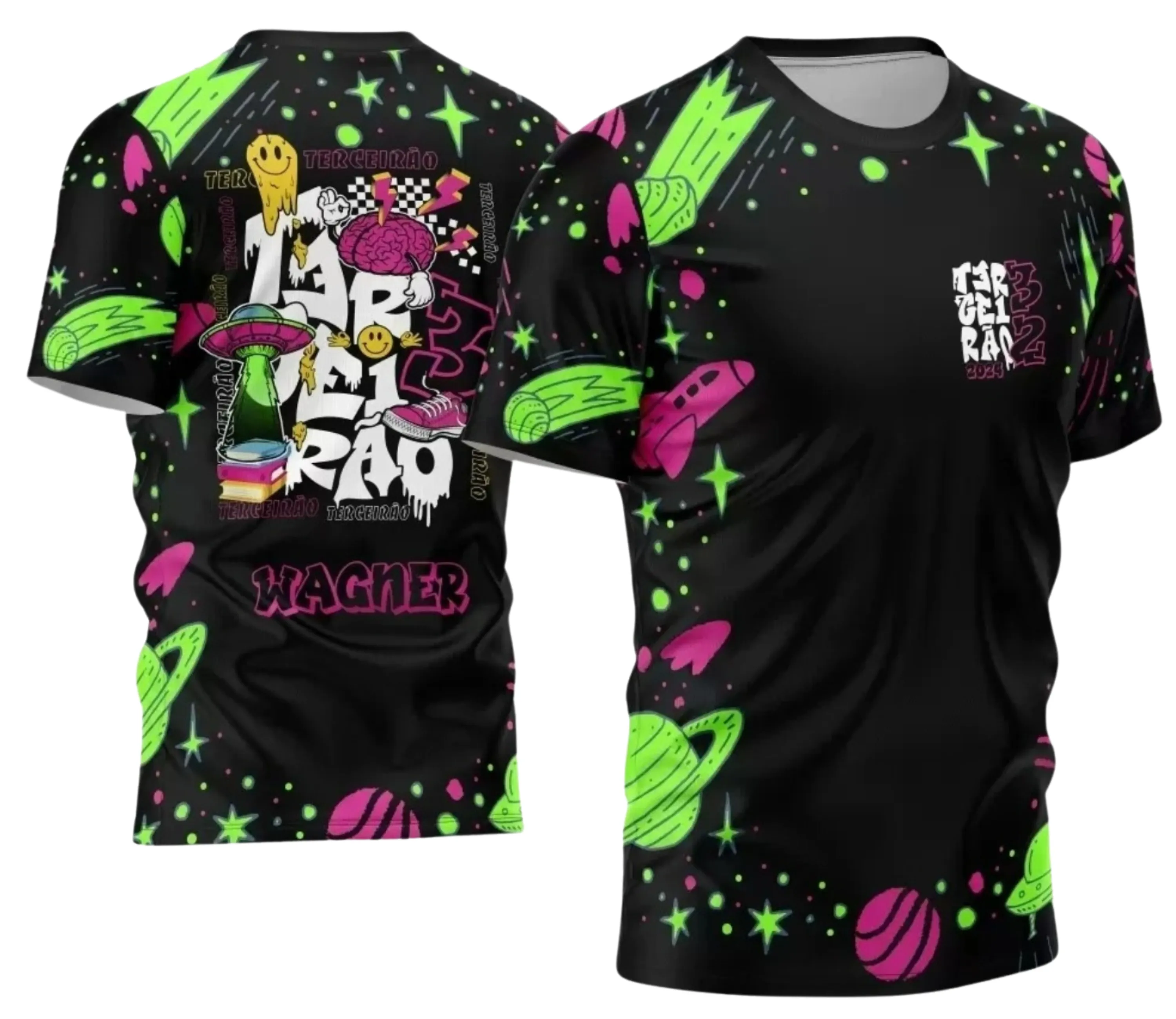 O Template Camisa Preta Terceirão 2024 Alien é mais do que uma arte para sublimação; é um passaporte para a originalidade e a criatividade na celebração do seu ano de formatura. Com facilidade de personalização e adaptação a diversos produtos, essa arte é a escolha certa para quem deseja deixar uma marca única no terceirão. Não perca a chance de fazer parte dessa aventura espacial, adquira já e prepare-se para impressionar!