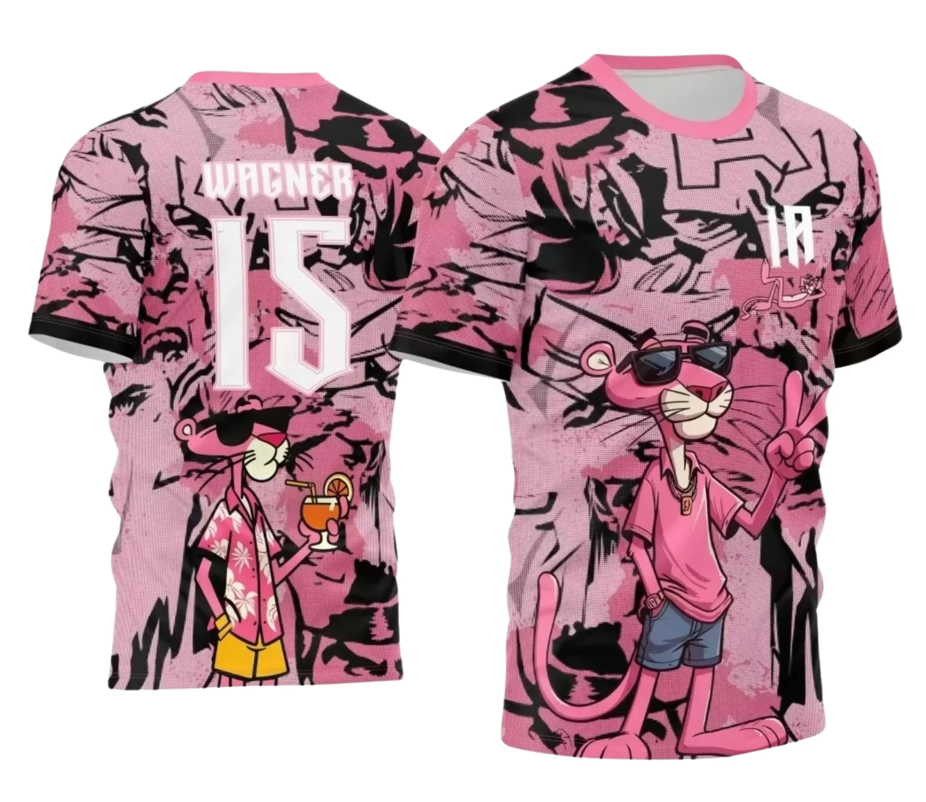 Desenvolvida especialmente para sublimação, esta arte garante que cada camisa apresente cores vibrantes e um acabamento de alta qualidade, resistente a múltiplas lavagens e intensa atividade física. A Arte Estampa Camisa Interclasse - Jogos Internos 2024 - Pantera Cor de Rosa é perfeita para equipes que desejam se destacar não apenas pelo desempenho, mas também pelo visual único.