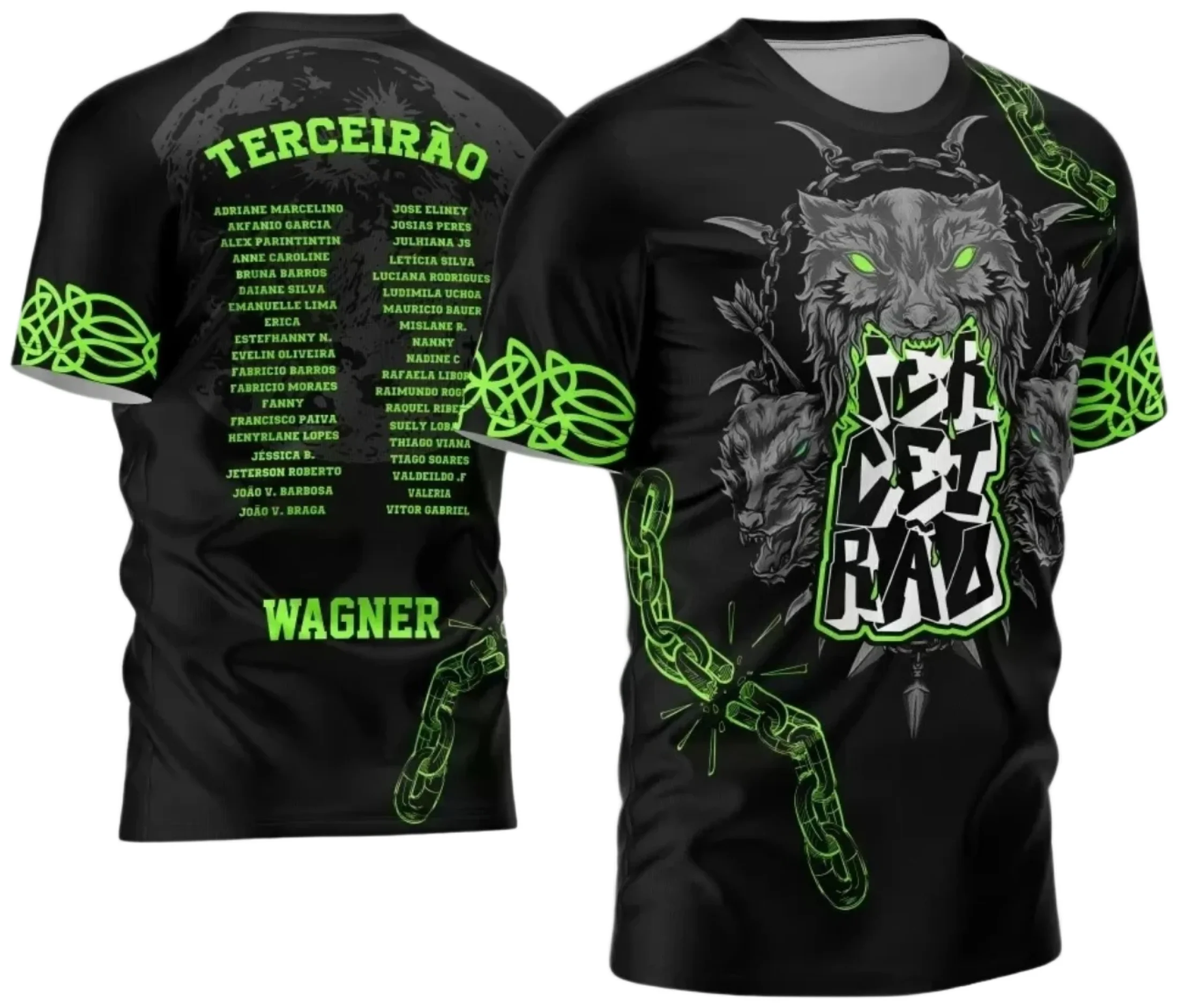 Atenção: Esta não é uma simples camisa, é o símbolo do auge da sua jornada escolar. A Arte Vetor Camisa Terceirão Pele de Lobo 2024 em formato CDR (CorelDRAW X7) apresenta um design arrojado com um lobo feroz em cores de neon vibrantes, destacando-se contra o fundo escuro para capturar o espírito da sua turma. Com cadeias quebradas simbolizando novos começos e listas de nomes, é uma homenagem personalizada à sua turma do terceirão.
