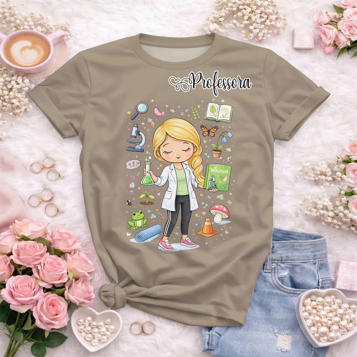 Arte Camisa Professora de Biologia Estampa Fofa Modelo 07