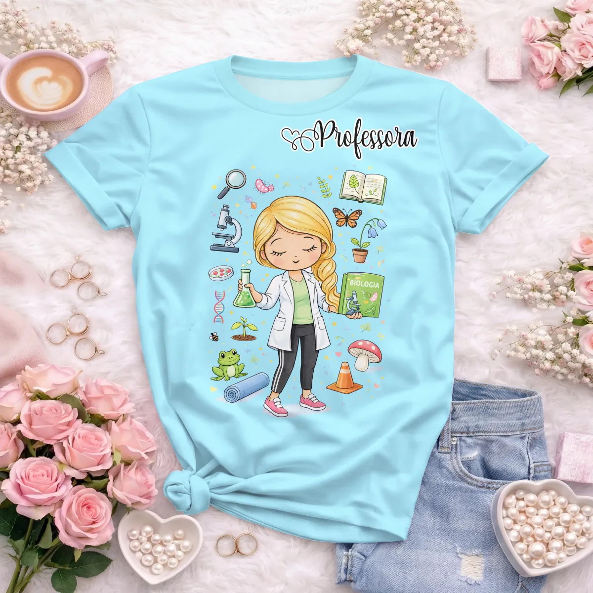 Arte Camisa Professora de Biologia Estampa Fofa Modelo 21