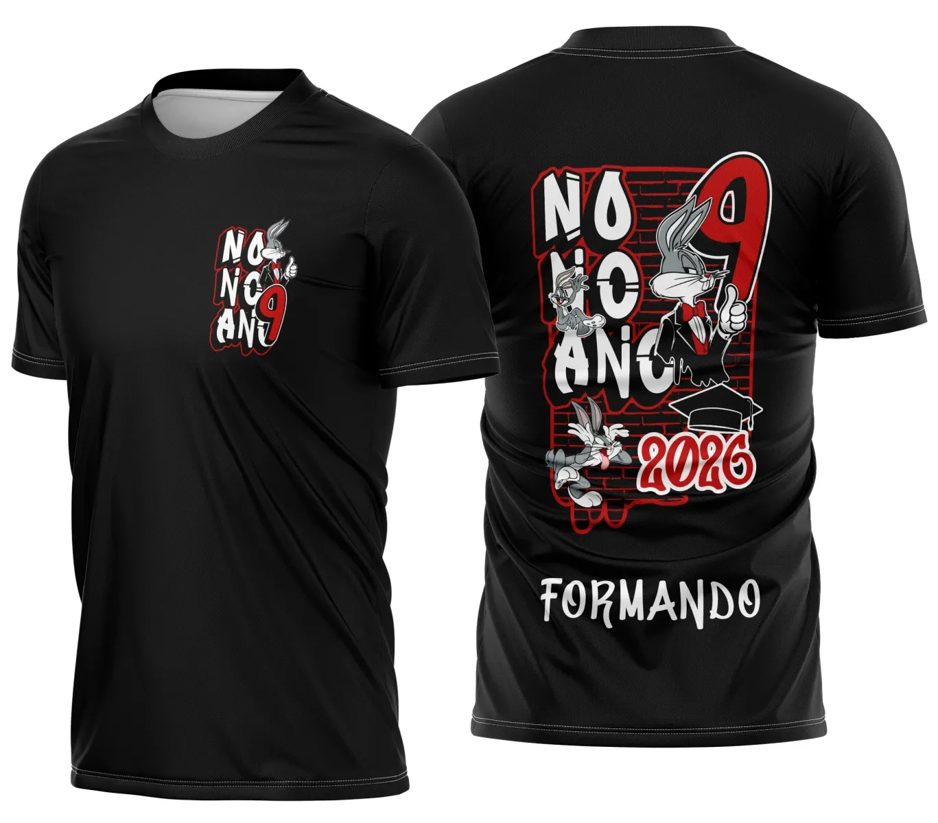 Imagine a turma do nono ano se preparando para a última festa juntos. Todos querem algo divertido e representativo, então surge a ideia de criar uma camisa especial que simbolize essa fase única. Um coelho estilizado em cartoon, cheio de energia e cores, tornou-se o mascote perfeito para marcar esse momento. A ansiedade tomou conta para ver a estampa grande nas costas que celebraria essa etapa com muita personalidade, enquanto o logo no peito mostrava orgulhosamente o espírito da turma.O Que Você Recebe com a Arte Exclusiva para Camisa Nono Ano Coelho Cartoon Escolar