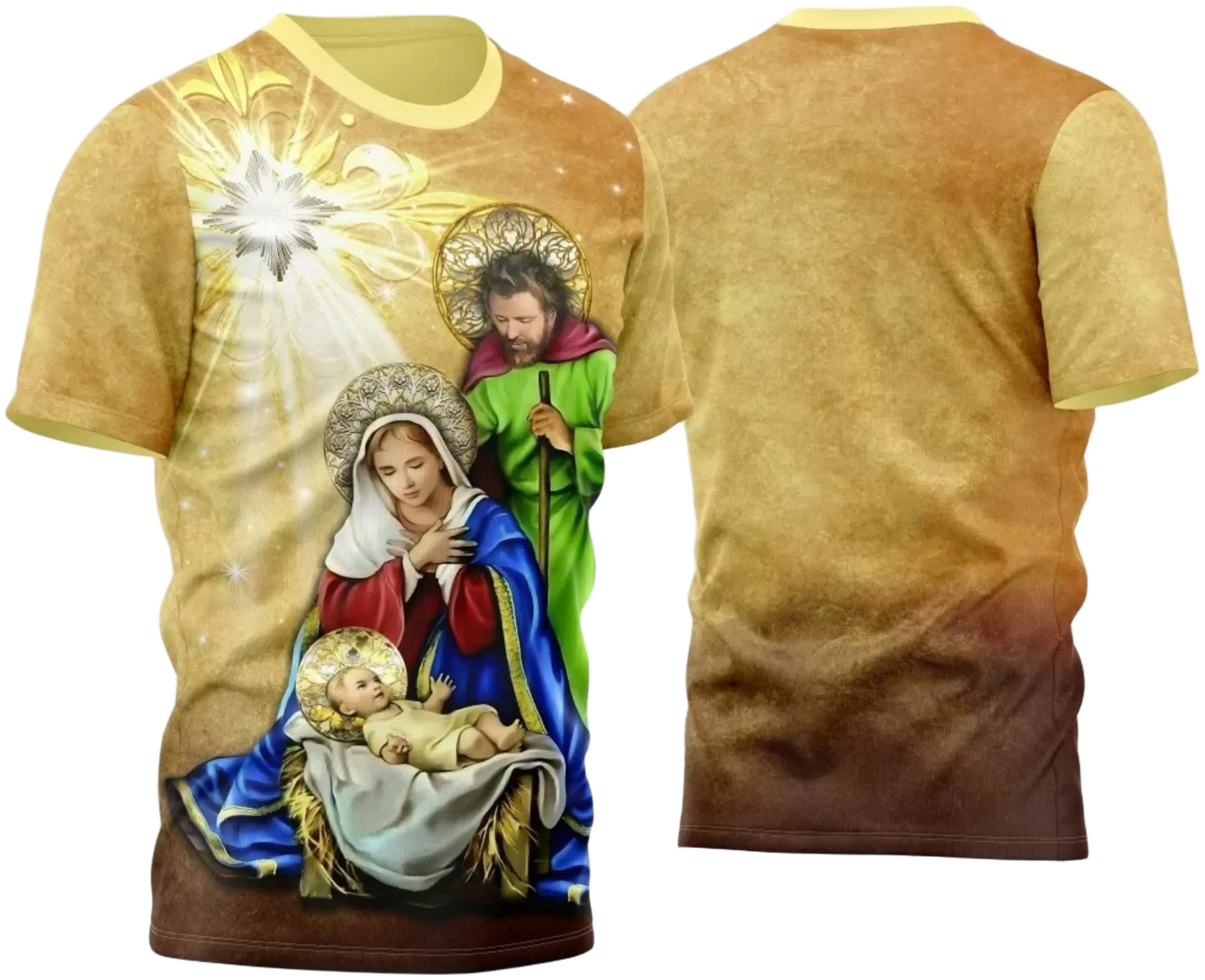 A imagem da Sagrada Família, composta por José, Maria e o menino Jesus, é uma das representações mais queridas e respeitadas dentro da tradição cristã. O vetor captura a essência desta sagrada reunião com cores suaves e linhas harmoniosas que transmitem paz e serenidade. Ideal para aplicação por sublimação, esta arte assegura a preservação de cada detalhe, resultando em peças de vestuário de alta qualidade que expressam a fé com elegância e dignidade.