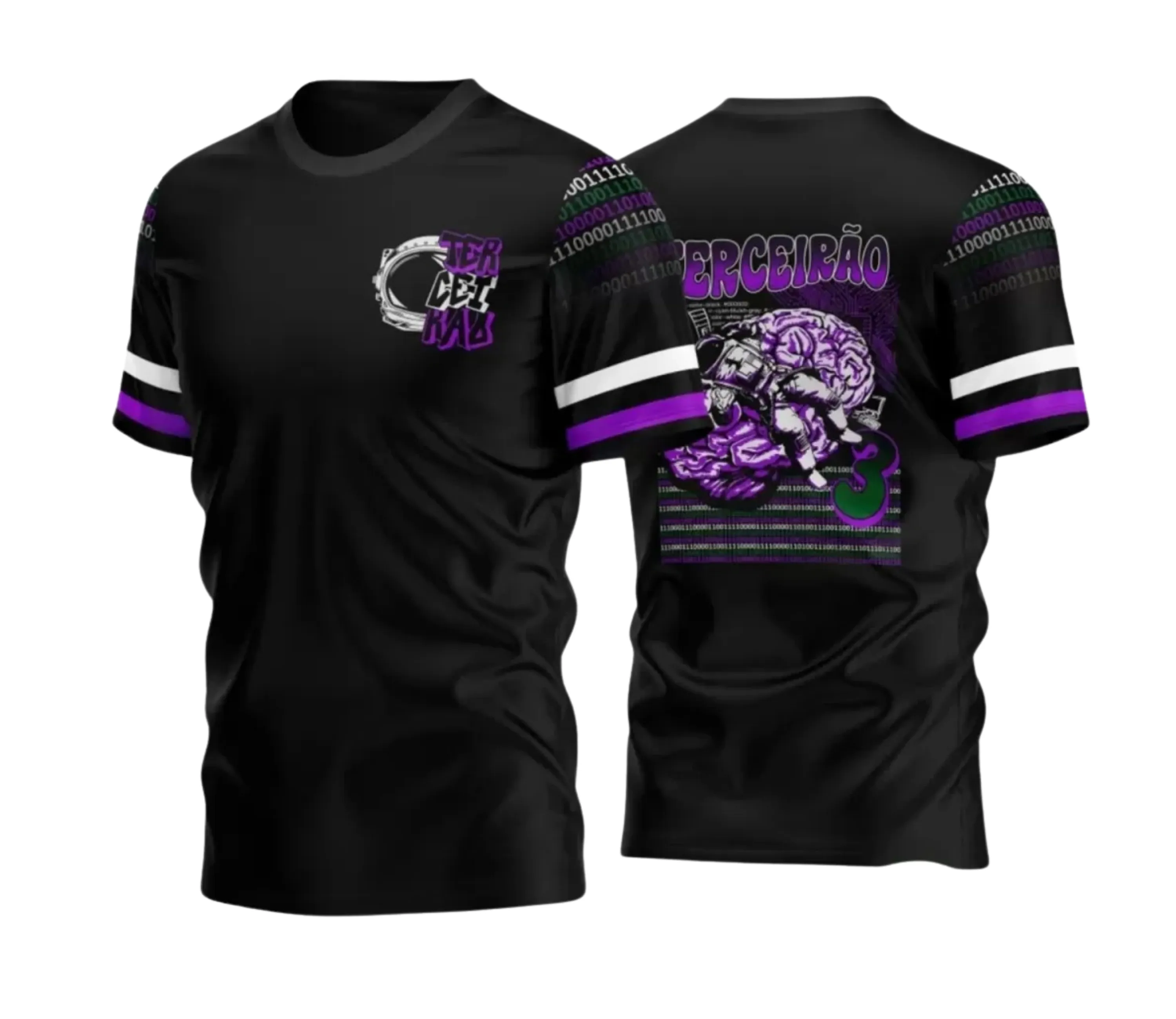 Projetada para brilhar em camisetas de cores escuras, como preto ou azul-marinho, a estampa destaca a temática espacial e tecnológica, criando um visual moderno e futurista. Seja para eventos de formatura, ensaios fotográficos ou o uso no dia a dia escolar, esta arte será um símbolo inesquecível da jornada do Terceirão.