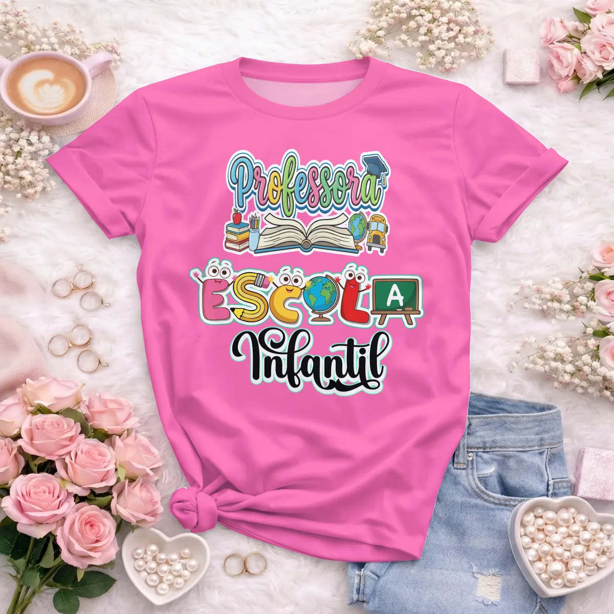 O design da camiseta foi pensado para equilibrar delicadeza, profissionalismo e versatilidade. O visual é adequado ao ambiente escolar, transmitindo cuidado, organização e empatia — características fundamentais para quem atua com crianças pequenas.
