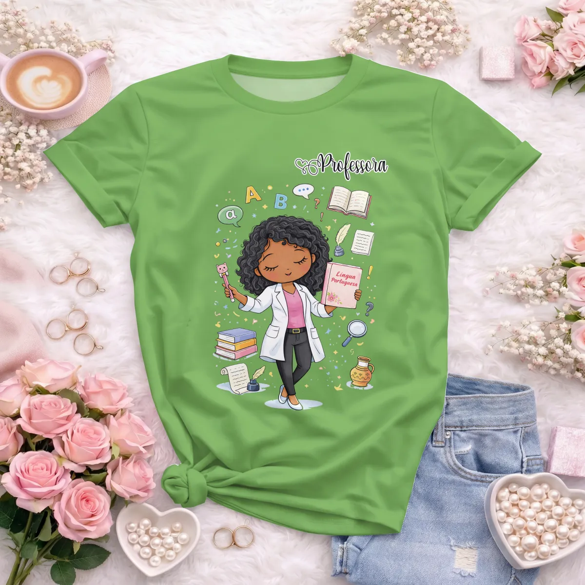 Camiseta Professora – Estampa Fofa e Confortável para Aula