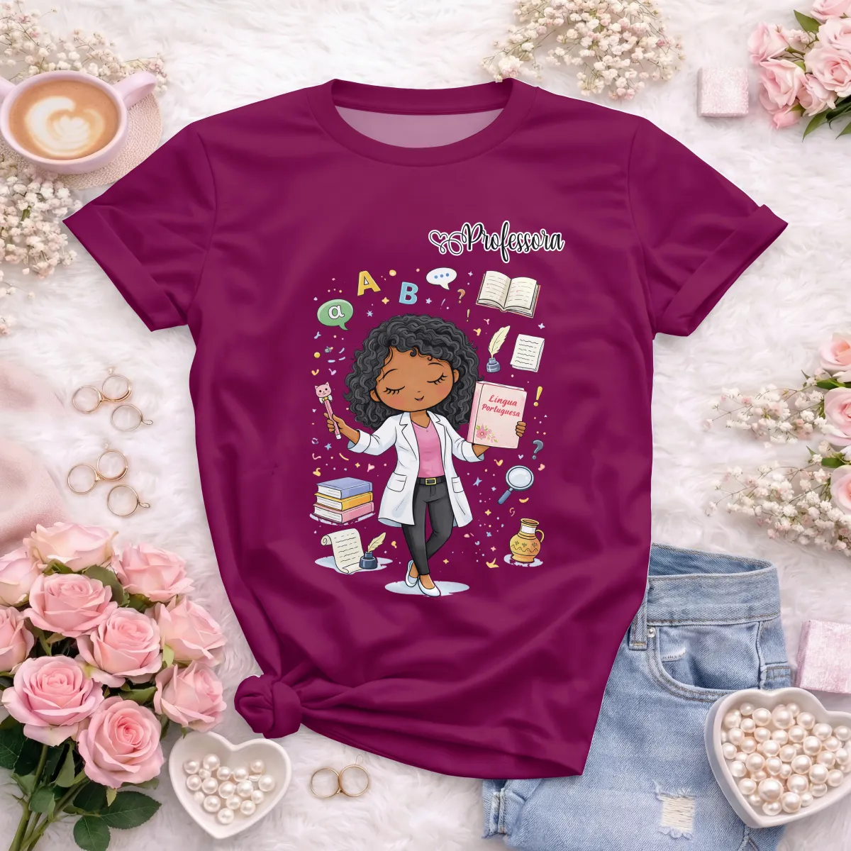 Camiseta Professora – Estampa Fofa e Confortável para Aula