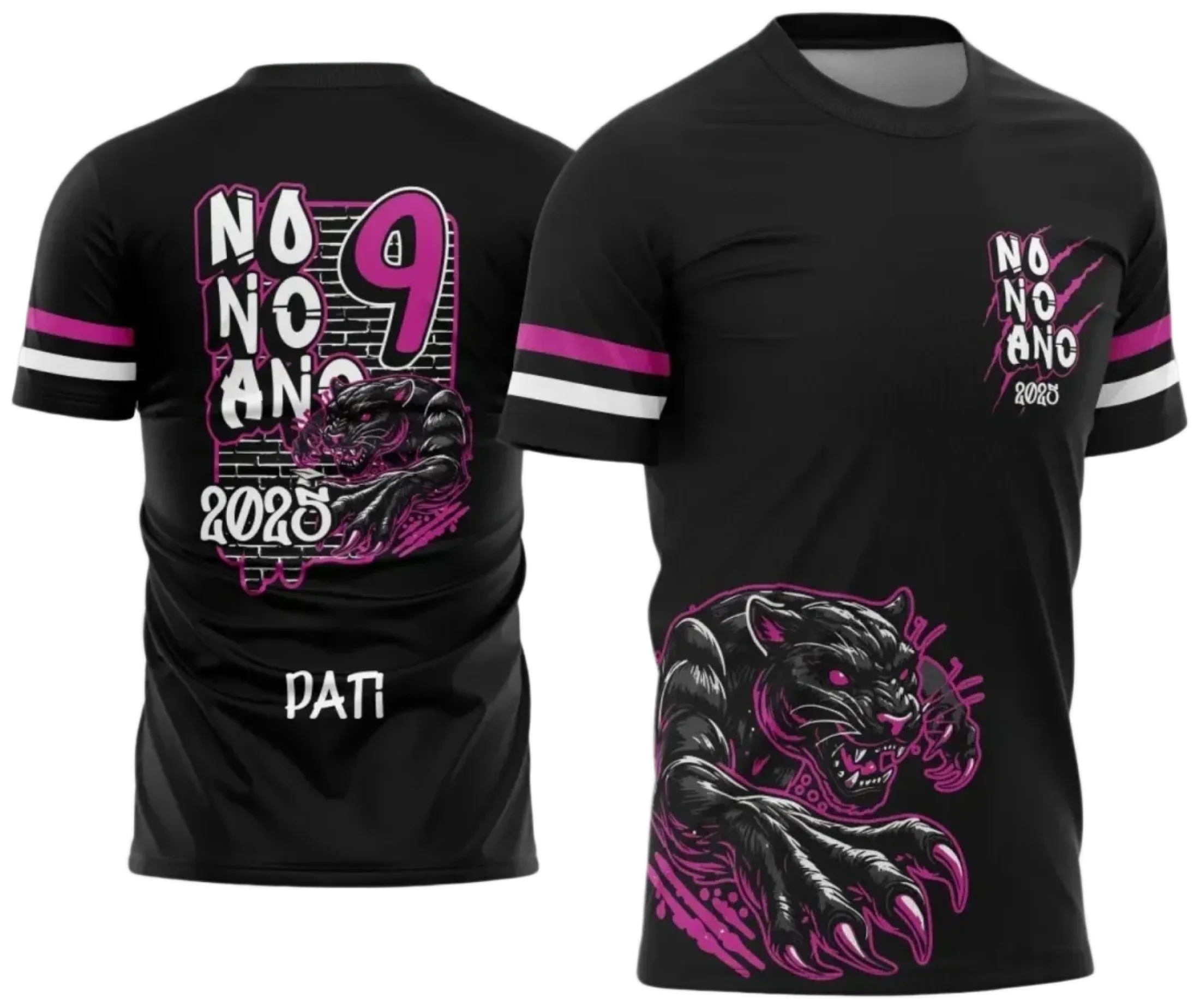 A Estampa Pantera: Uniforme Escolar 9º Ano 2025 traz força, garra e identidade para representar a energia da sua turma. Desenvolvida em vetor com alta qualidade, essa arte é perfeita para ser usada em camisetas escolares personalizadas com sublimação.