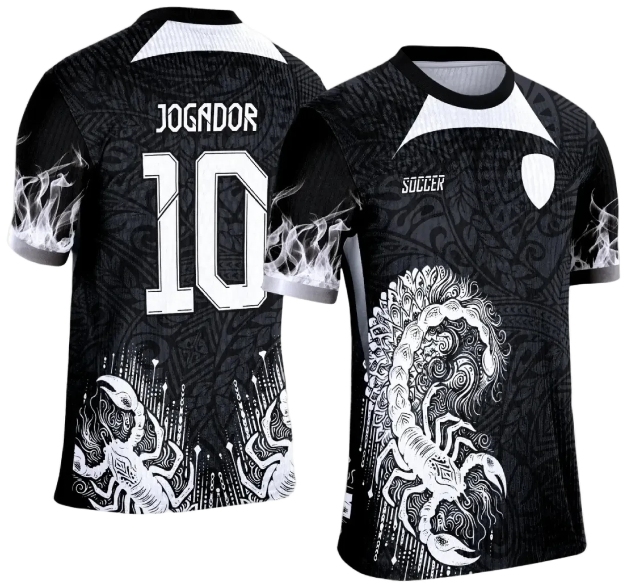 O design pode ser impresso em sublimação, silk screen e transfer, garantindo alta qualidade e fidelidade aos detalhes.