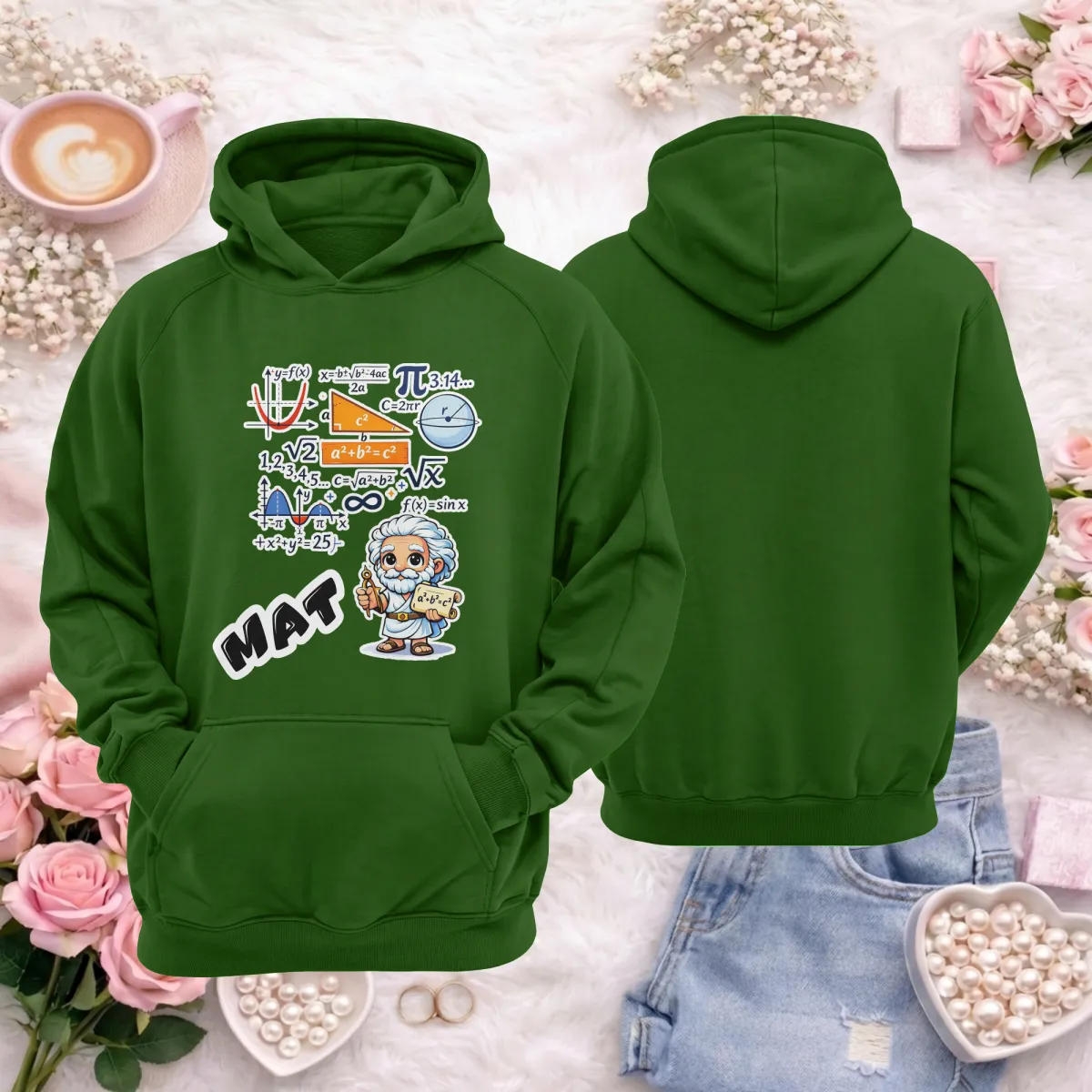 A matemática faz parte da vida de quem ensina e aprende, e vestir um moletom com esse tema é uma forma de valorizar o conhecimento, a lógica e o pensamento crítico. O design traz elementos matemáticos clássicos apresentados de maneira criativa e visualmente atrativa, tornando o moletom ideal para ambientes escolares e acadêmicos.